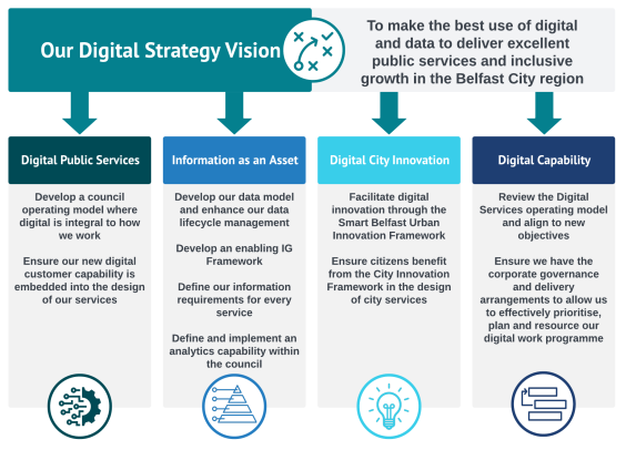 · We have set a bold vision for how technology can transform Belfast City Council. We want to strengthen our digital and information capability, enhancing our ability to be an effective civic leader in a data-enabled smart city.